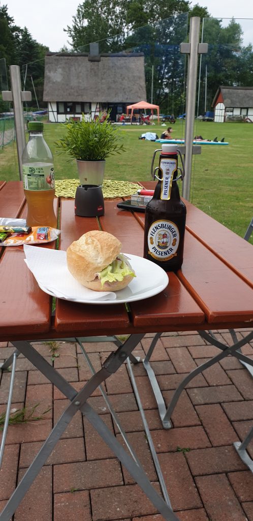 2. Leider war der Shanty-Chor der Nord-Ost-Marina auf Tournee, Klaus. So war es uns, den Mitgliedern des Abschiedskommites am Steg, Freude und Vertretungsverpflichtung zugleich, im Rahmen der Möglichkeiten dem Abschied angemessene Laute – Gesang als Bezeichnung wäre geschönt – zu generieren und die Leinen ein wenig widerstrebend zu lösen.